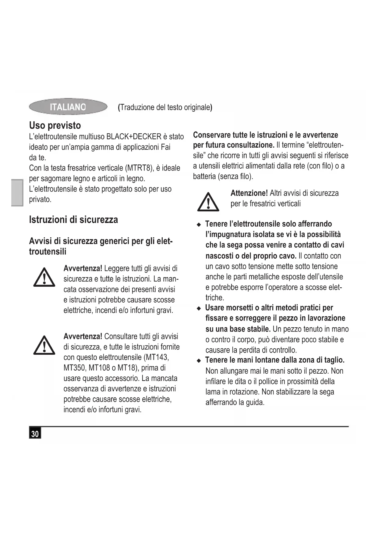 MANUALE UTENTE MTRT8 BLACK & DECKER