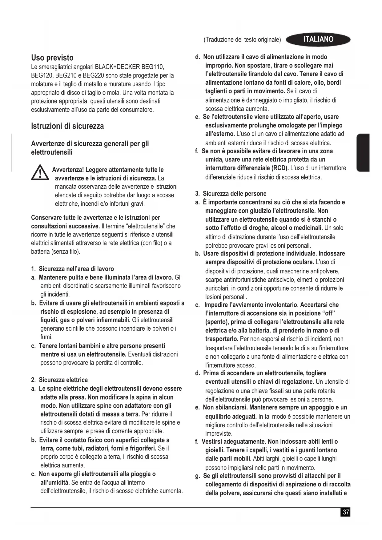 MANUALE UTENTE BEG120 BLACK & DECKER