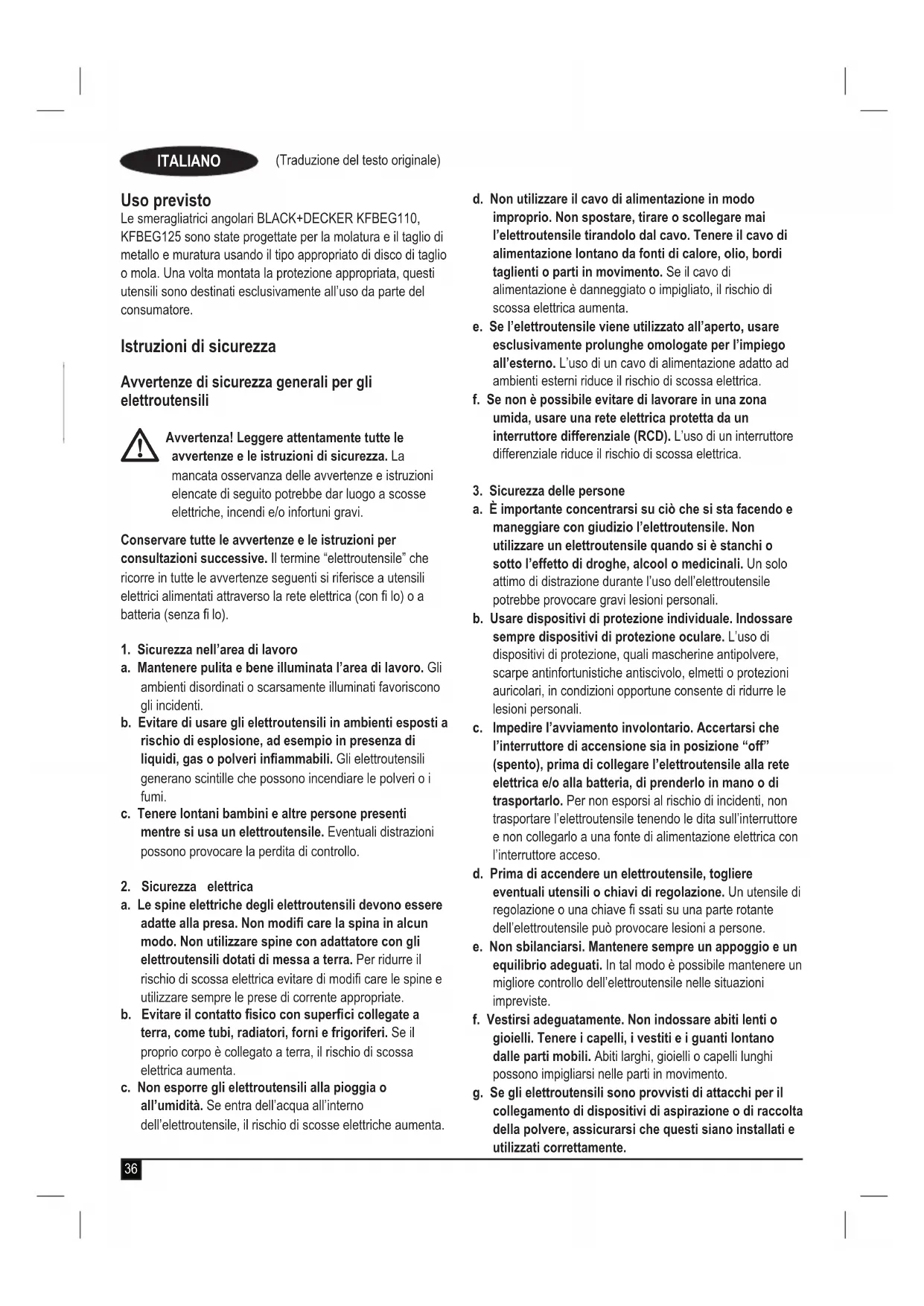 MANUALE UTENTE KFBEG110 BLACK & DECKER