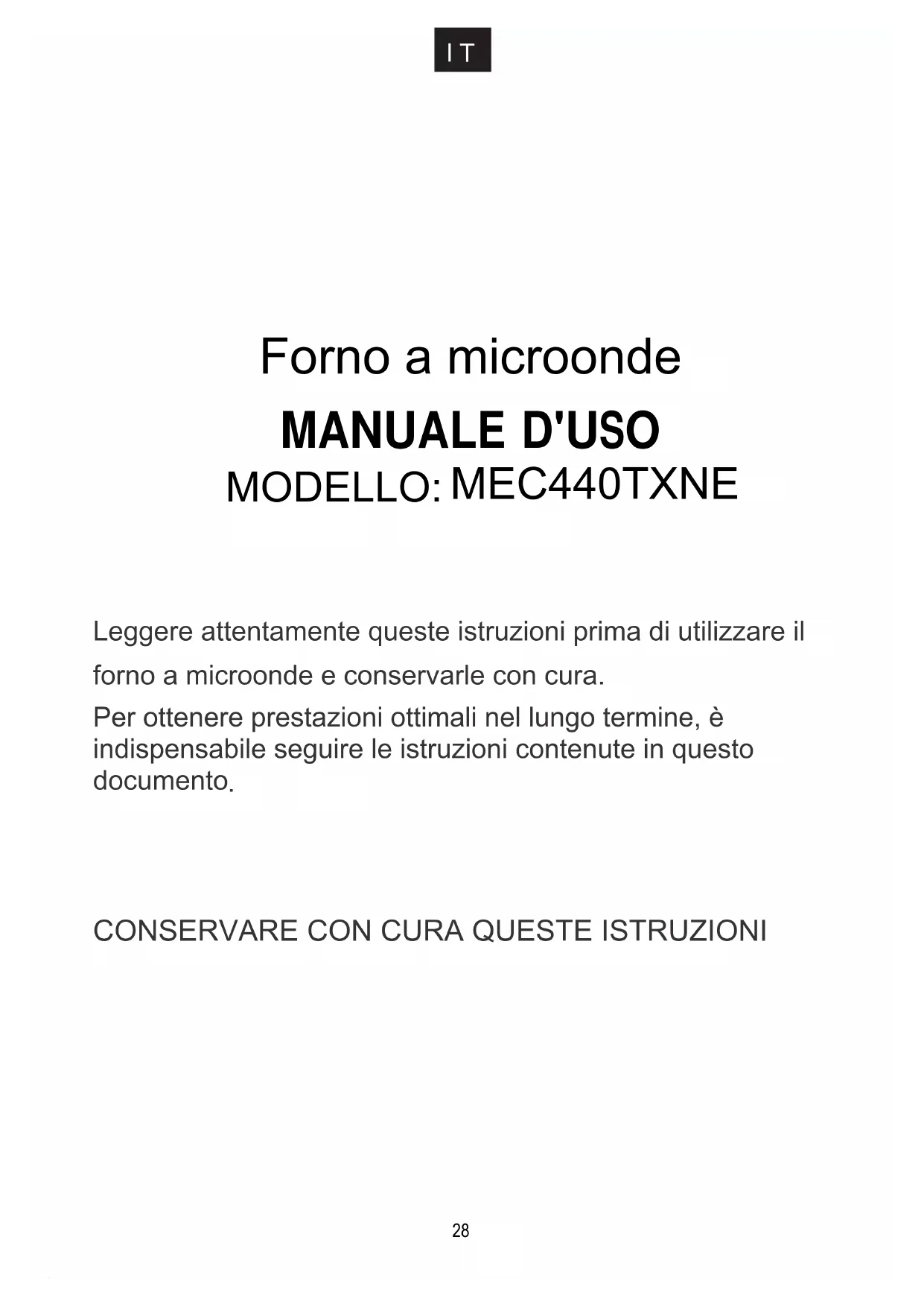 Leggere attentamente queste istruzioni prima di utilizzare il forno a microonde e conservarle con cura. Per ottenere prestazioni ottimali nel lungo termine, è indispensabile seguire le istruzioni contenute in questo documento