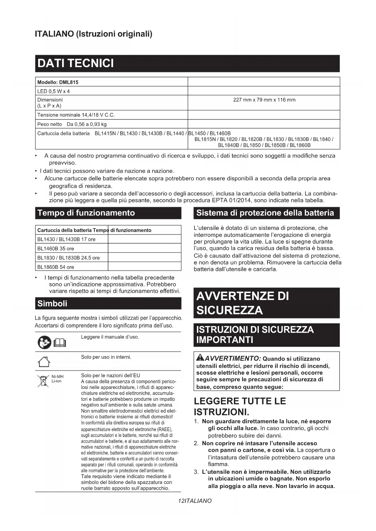 DML815 - Batteria MAKITA - Manuale utente e istruzioni gratuiti