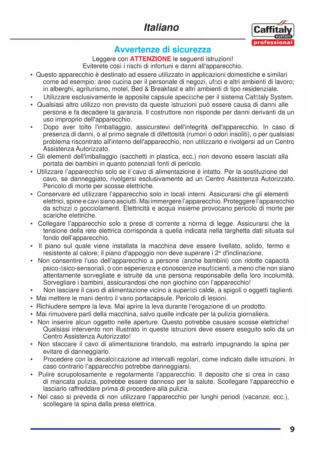 - Utilizzare esclusivamente le apposite capsule specifi che per il sistema Caffi taly System.