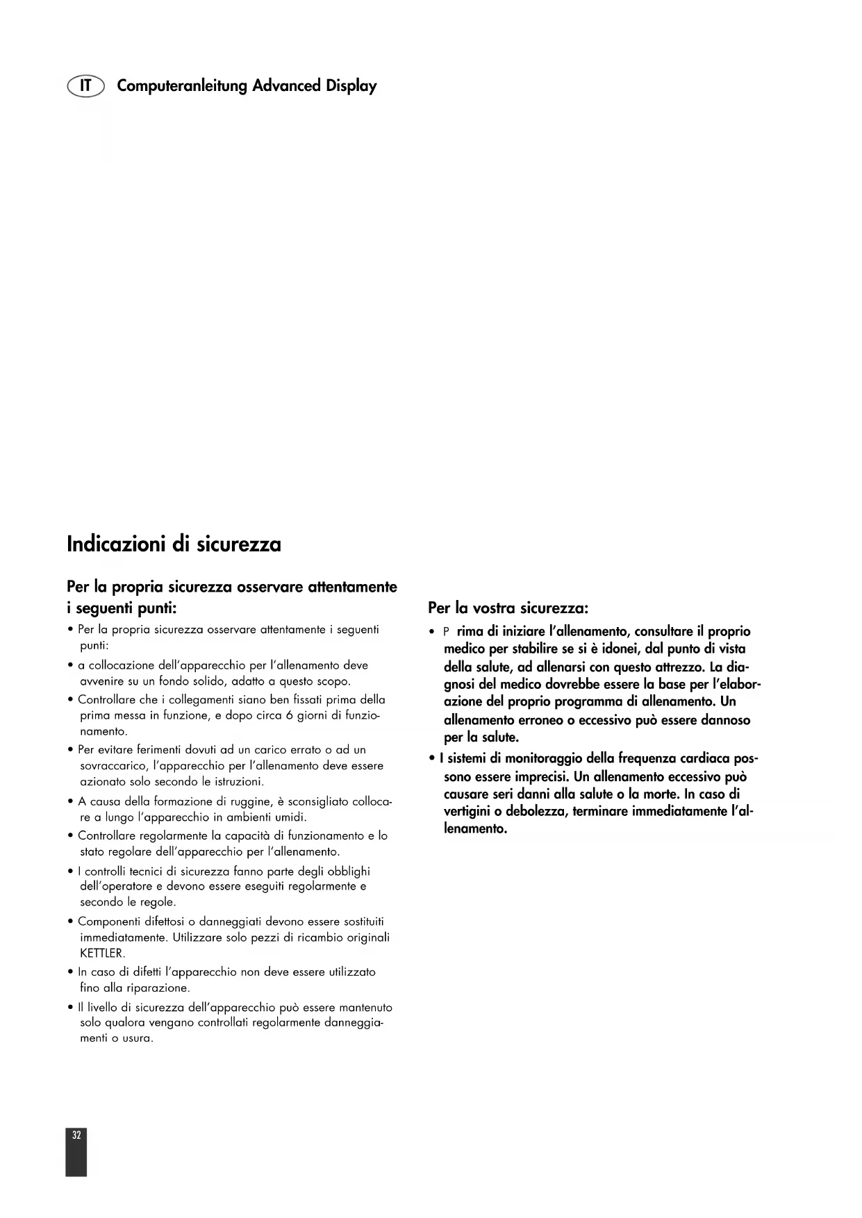 - Per evitare ferimenti dovuti ad un carico errato o ad un sovraccarico, l’apparecchio per l’allenamento deve essere azionato solo secondo le istruzioni.