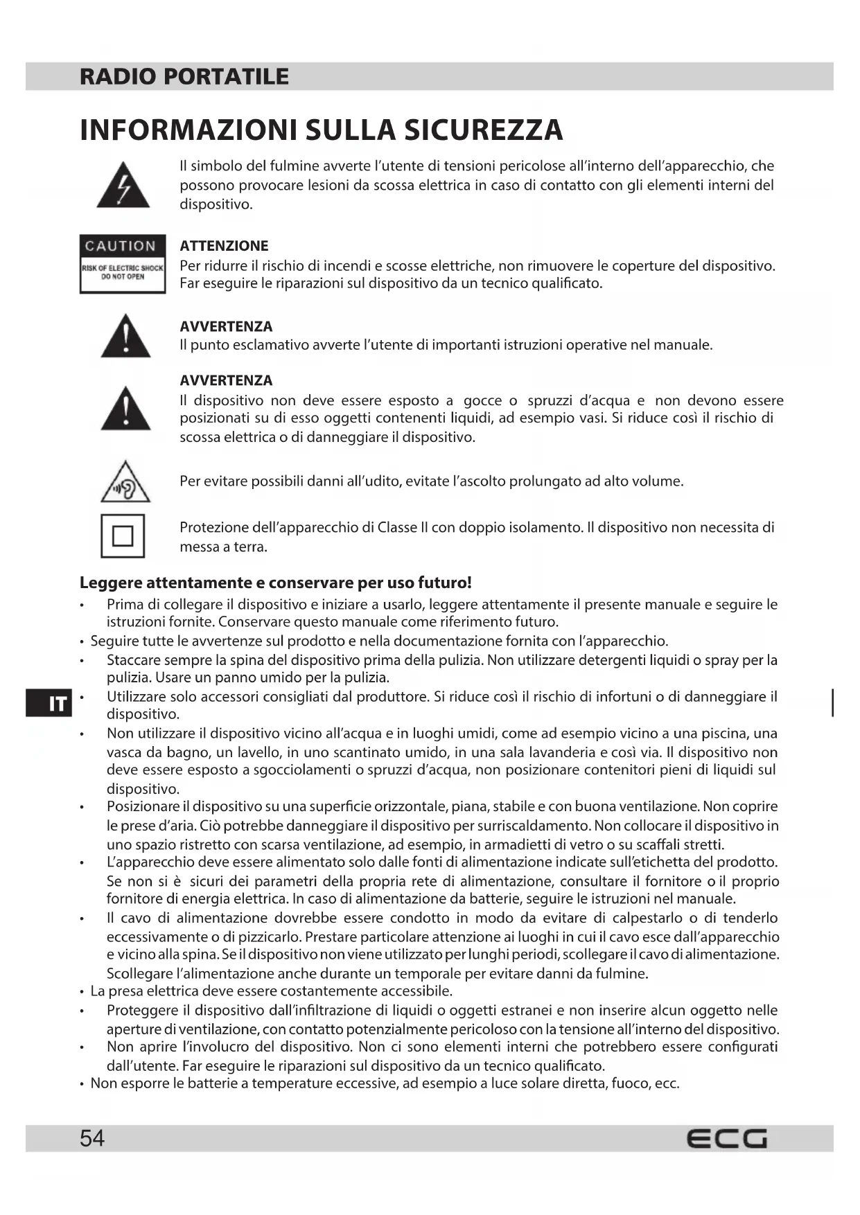 Scarica le istruzioni per il tuo Radio in formato PDF gratuitamente! Trova il tuo manuale R 111 - ECG e riprendi in mano il tuo dispositivo elettronico. In questa pagina sono pubblicati tutti i documenti necessari per l'utilizzo del tuo dispositivo. R 111 del marchio ECG.