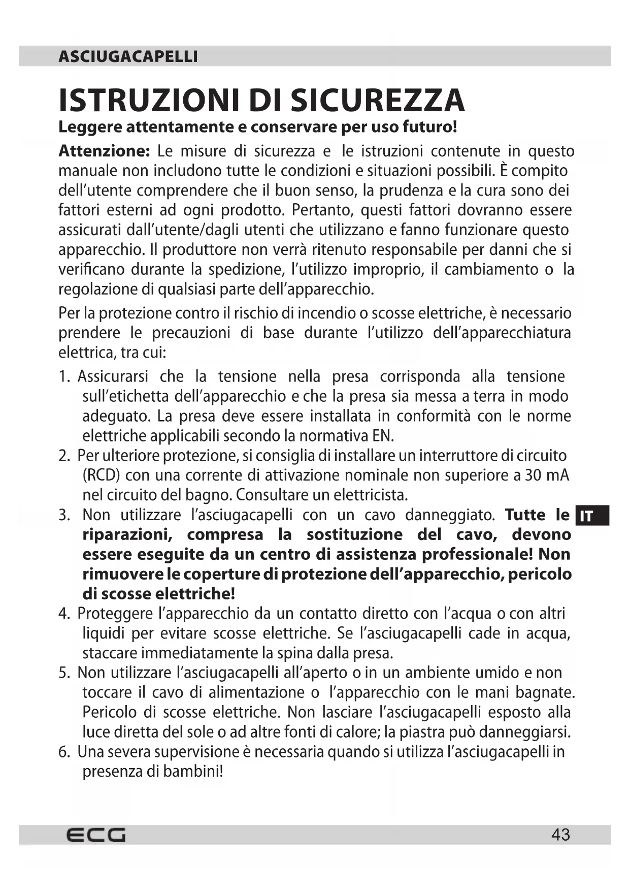Scarica le istruzioni per il tuo Asciugacapelli in formato PDF gratuitamente! Trova il tuo manuale VV 2200 - ECG e riprendi in mano il tuo dispositivo elettronico. In questa pagina sono pubblicati tutti i documenti necessari per l'utilizzo del tuo dispositivo. VV 2200 del marchio ECG.