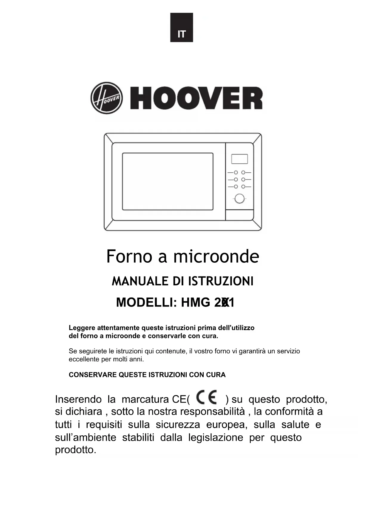 HMG171X - Microonde HOOVER - Manuale utente e istruzioni gratuiti