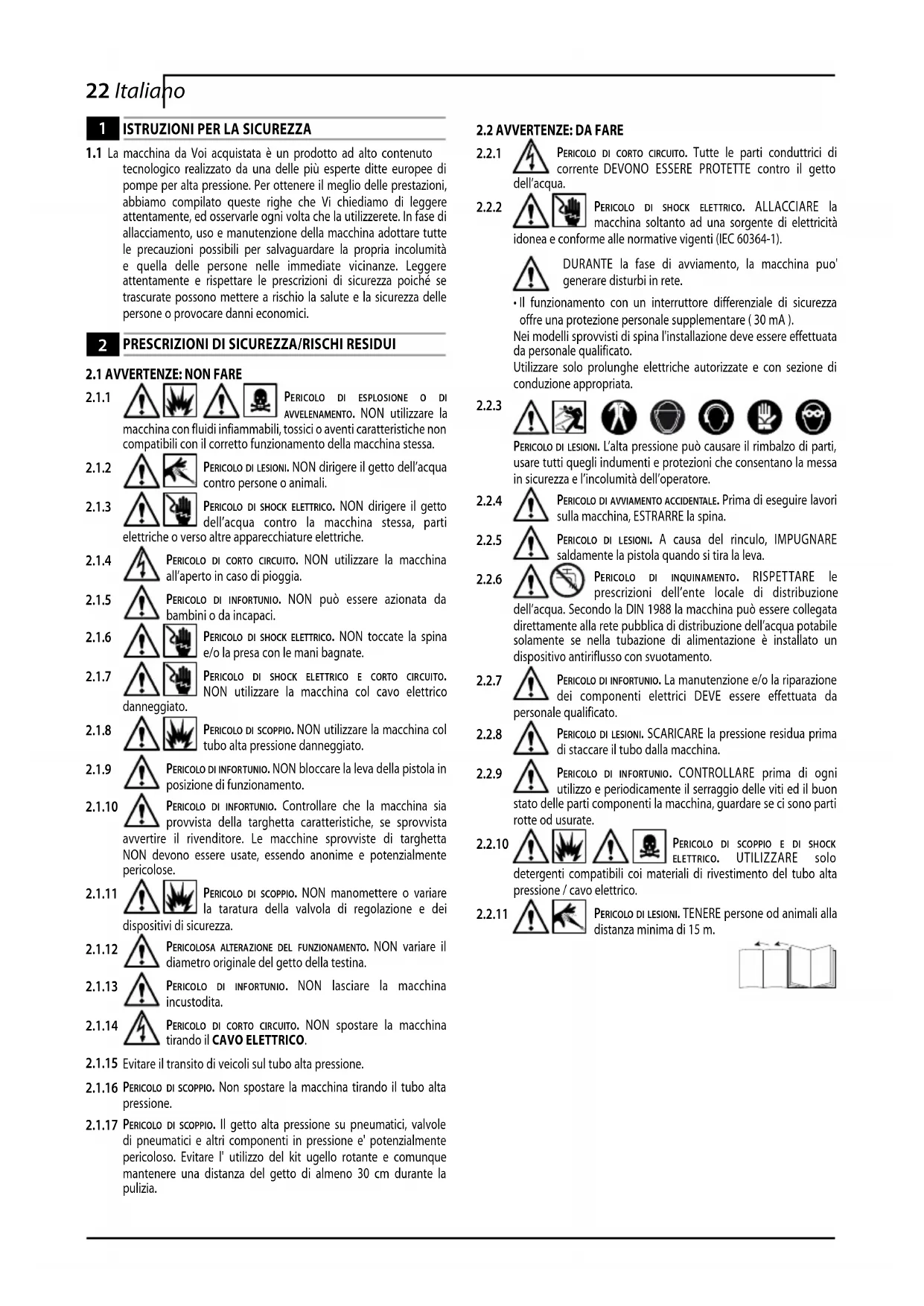 pericolo di lesioni. L’alta pressione può causare il rimbalzo di parti, usare tutti quegli indumenti e protezioni che consentano la messa in sicurezza e l’incolumità dell’operatore.