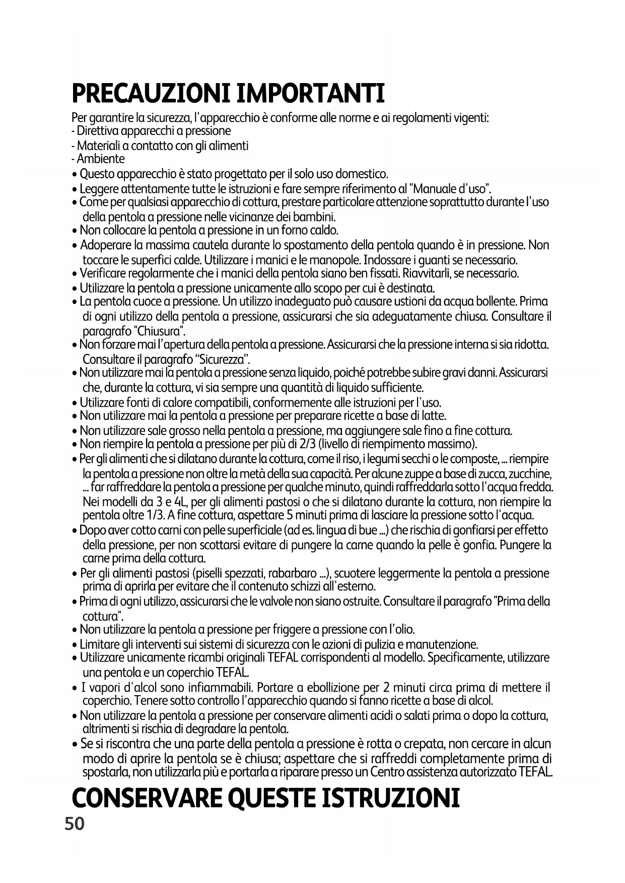 - Utilizzare la pentola a pressione unicamente allo scopo per cui è destinata.