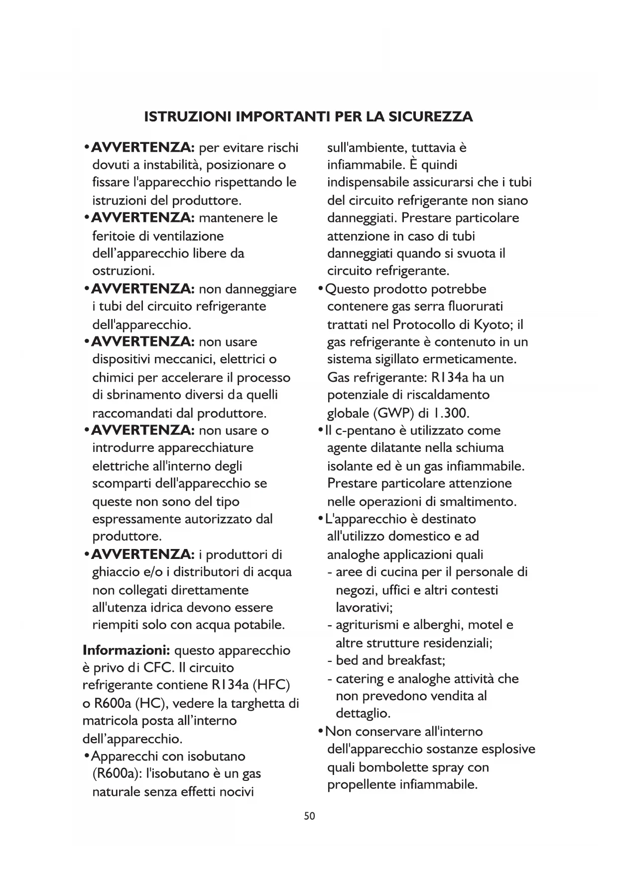 - AVVERTENZA: non usare dispositivi meccanici, elettrici o chimici per accelerare il processo di sbrinamento diversi d a quelli raccomandati dal produttore.