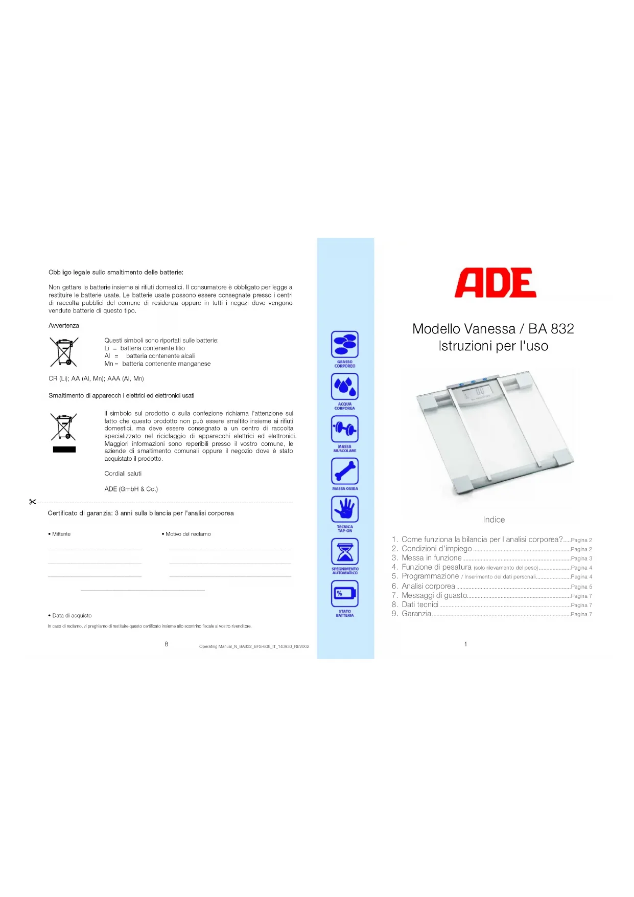 Vanessa BA 832 - Bilance ADE - Manuale utente e istruzioni gratuiti