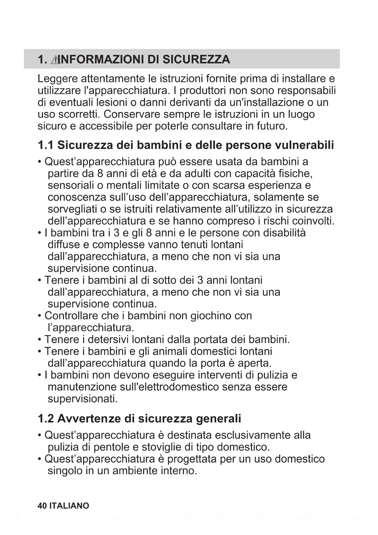 1.2 Avvertenze di sicurezza generali