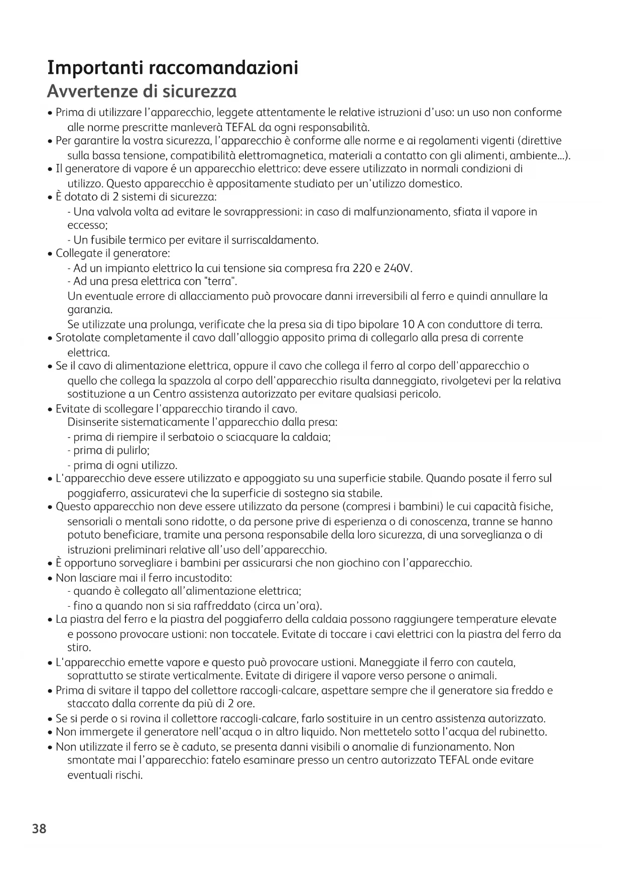 - Prima di utilizzare l’apparecchio, leggete attentamente le relative istruzioni d’uso: un uso non conforme alle norme prescritte manleverà TEFAL da ogni responsabilità.