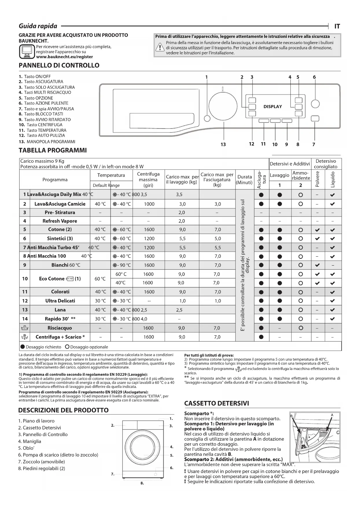 BAUKNECHT. Per ricevere un’assistenza più completa, registrare l’apparecchio su www.bauknecht.eu/register Prima di utilizzare l’apparecchio, leggere attentamente le istruzioni relative alla sicurezza