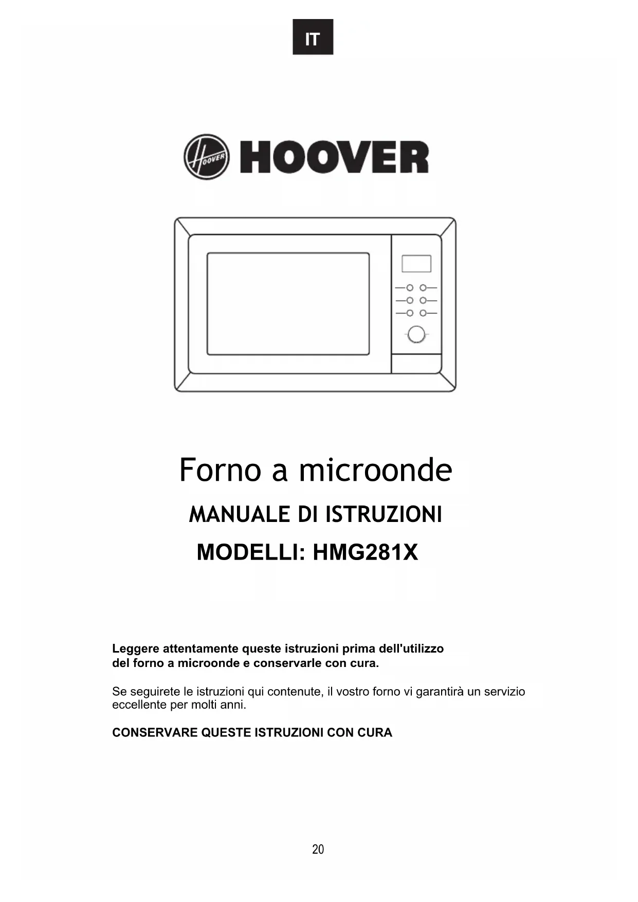 HMG281X - Microonde HOOVER - Manuale utente e istruzioni gratuiti