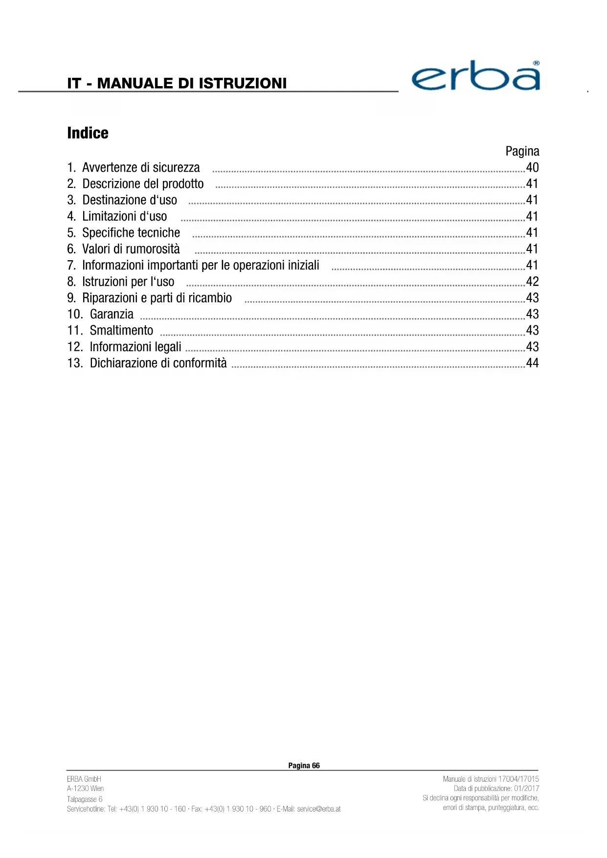 Trova gratuitamente il manuale del dispositivo 17004 Erba in formato PDF.