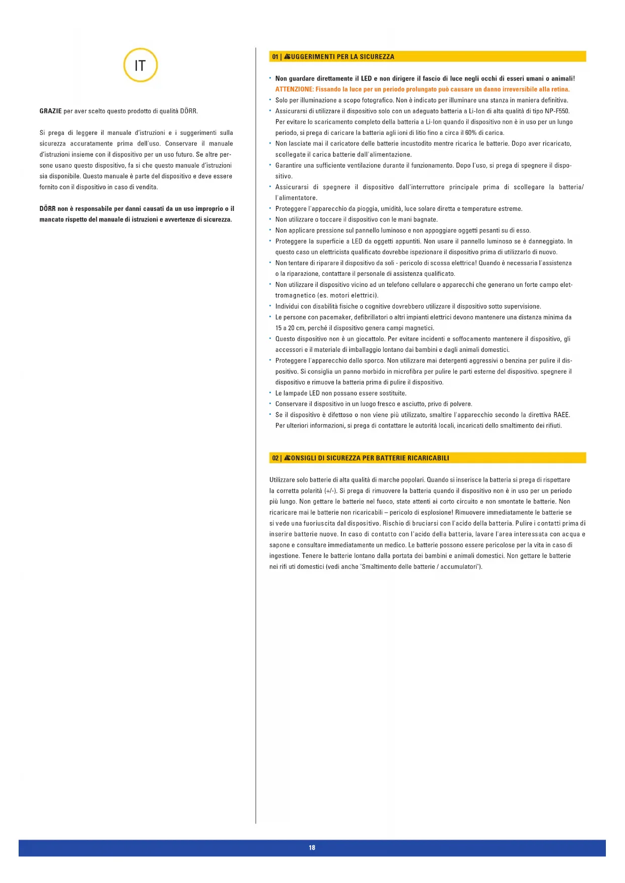 02 | CONSIGLI DI SICUREZZA PER BATTERIE RICARICABILI