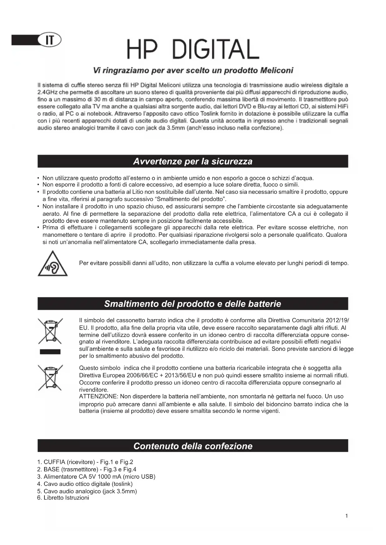 HP Digital - Casco MELICONI - Manuale utente e istruzioni gratuiti