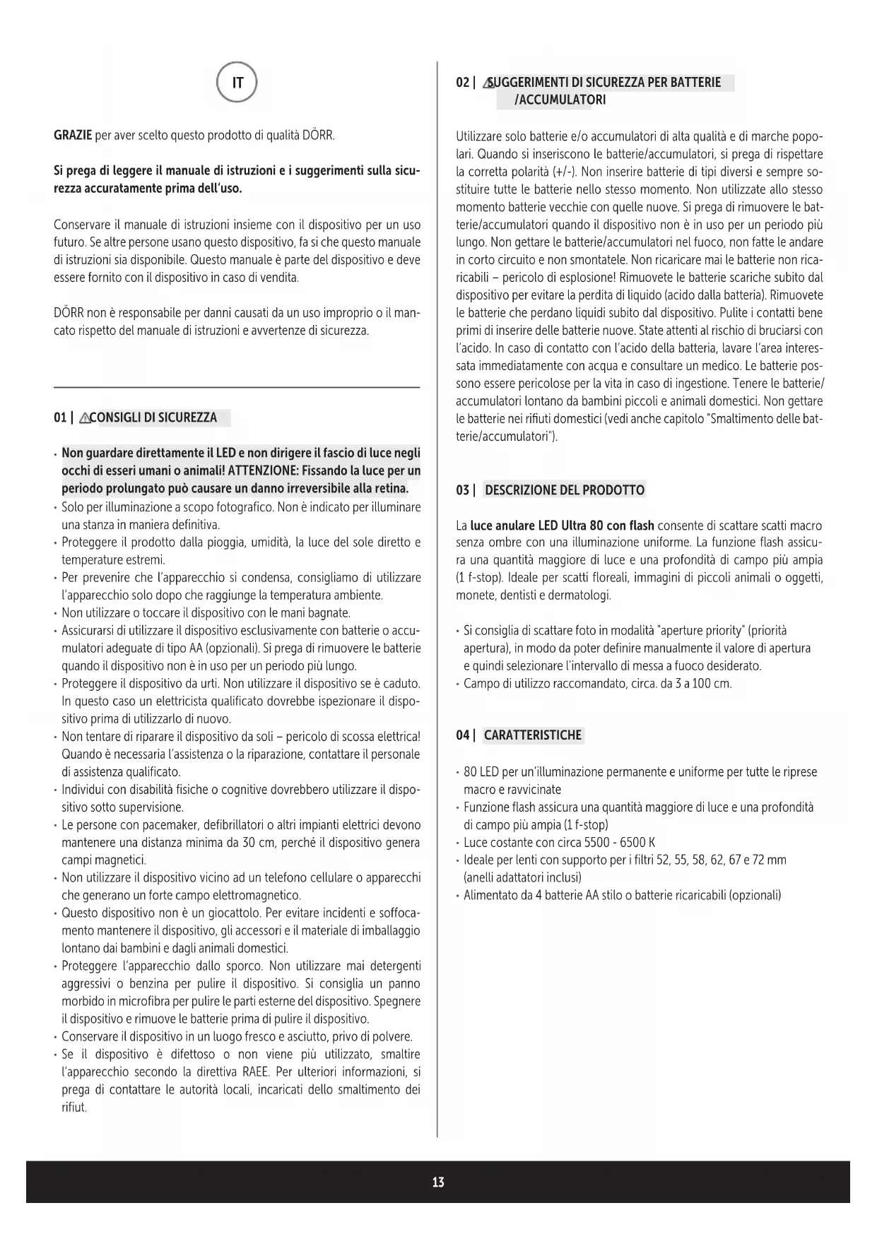 LED Ring Light with Flash Ultra 80 - Lampada Dörr - Manuale utente e istruzioni gratuiti