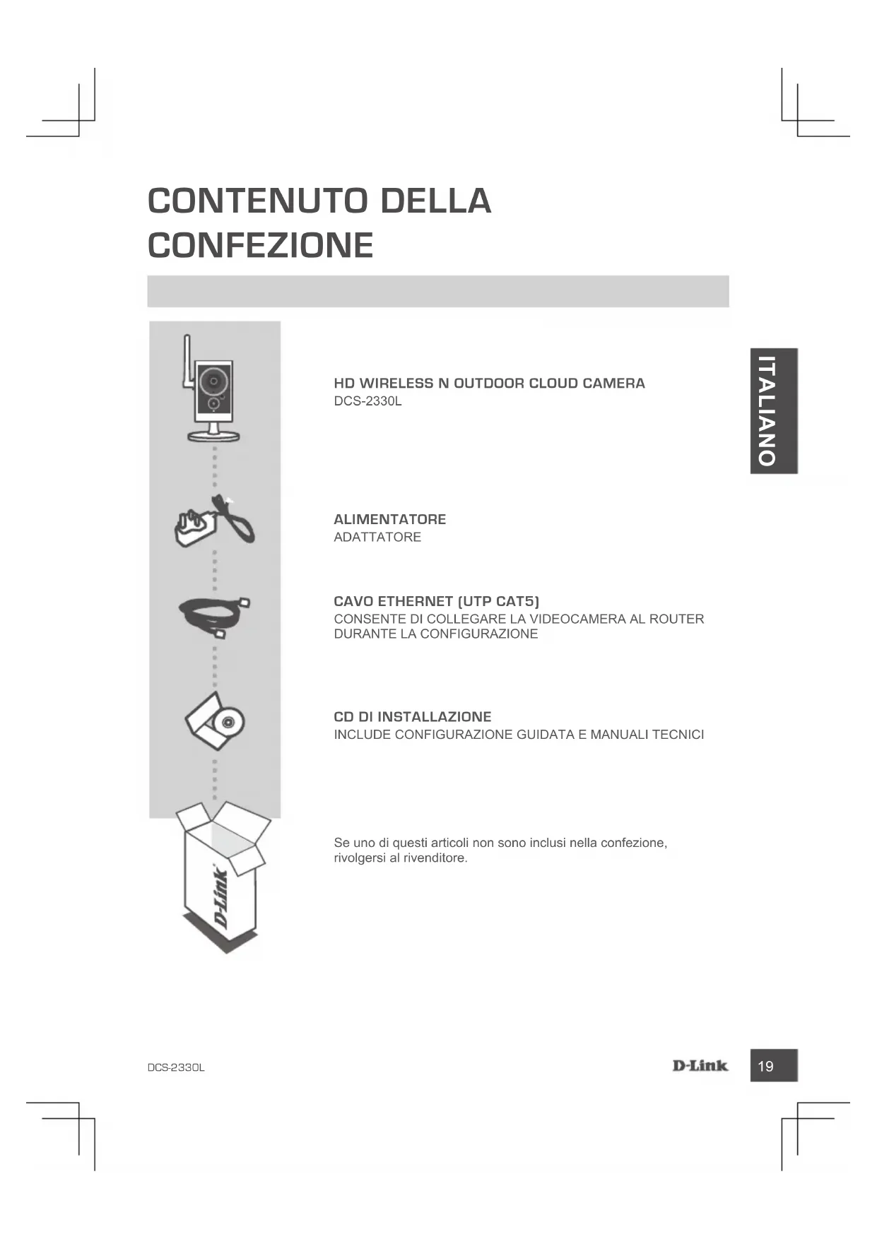 Se uno di questi articoli non sono inclusi nella confezione, rivolgersi al rivenditore.DCS-2330L