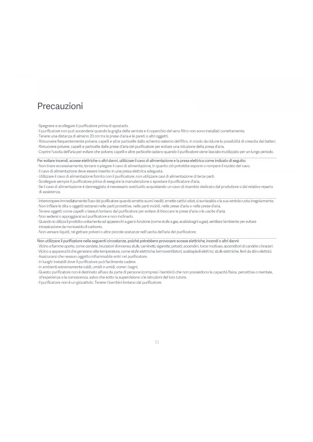 - Assicurarsi che nessun oggetto infiammabile entri nel purificatore.