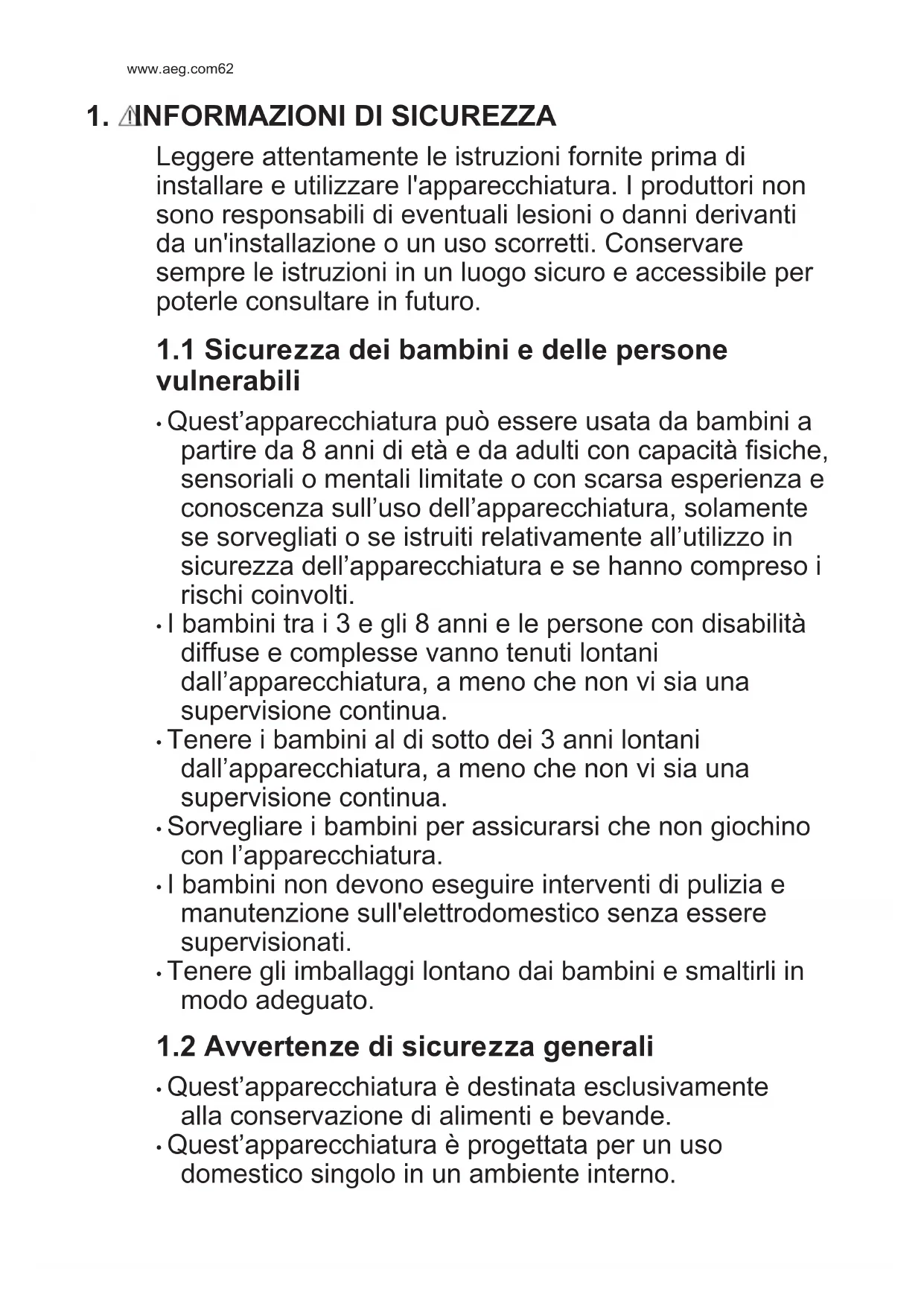 1.2 Avvertenze di sicurezza generali