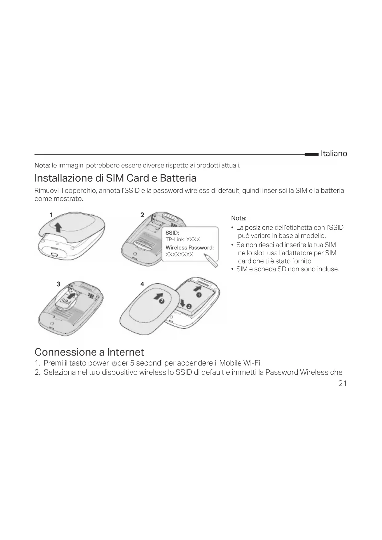 Wireless Password: XXXXXXXX SSID:TP-Link_XXXX SSID: TP-Link_XXXX Wireless Password: XXXXXXXX22 Italiano hai annotato. Nota: Si consiglia di modicare nome wireless e password di default per la sicurezza della rete. Fatto! Nota: