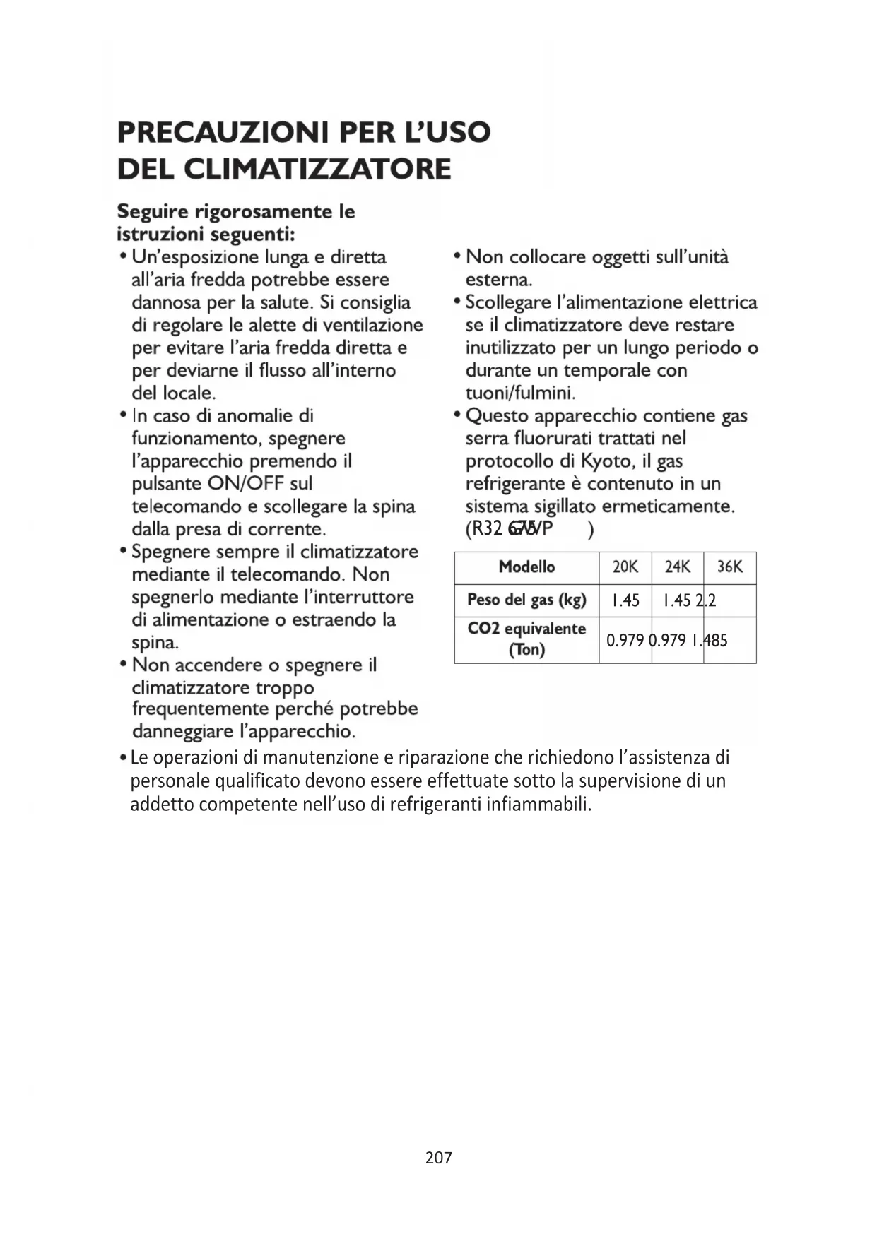 Tipo Modello Capacità interruttore aria 20K 30A Split lnveer 24K 30A 36K 40A 229PRECAUZIONI