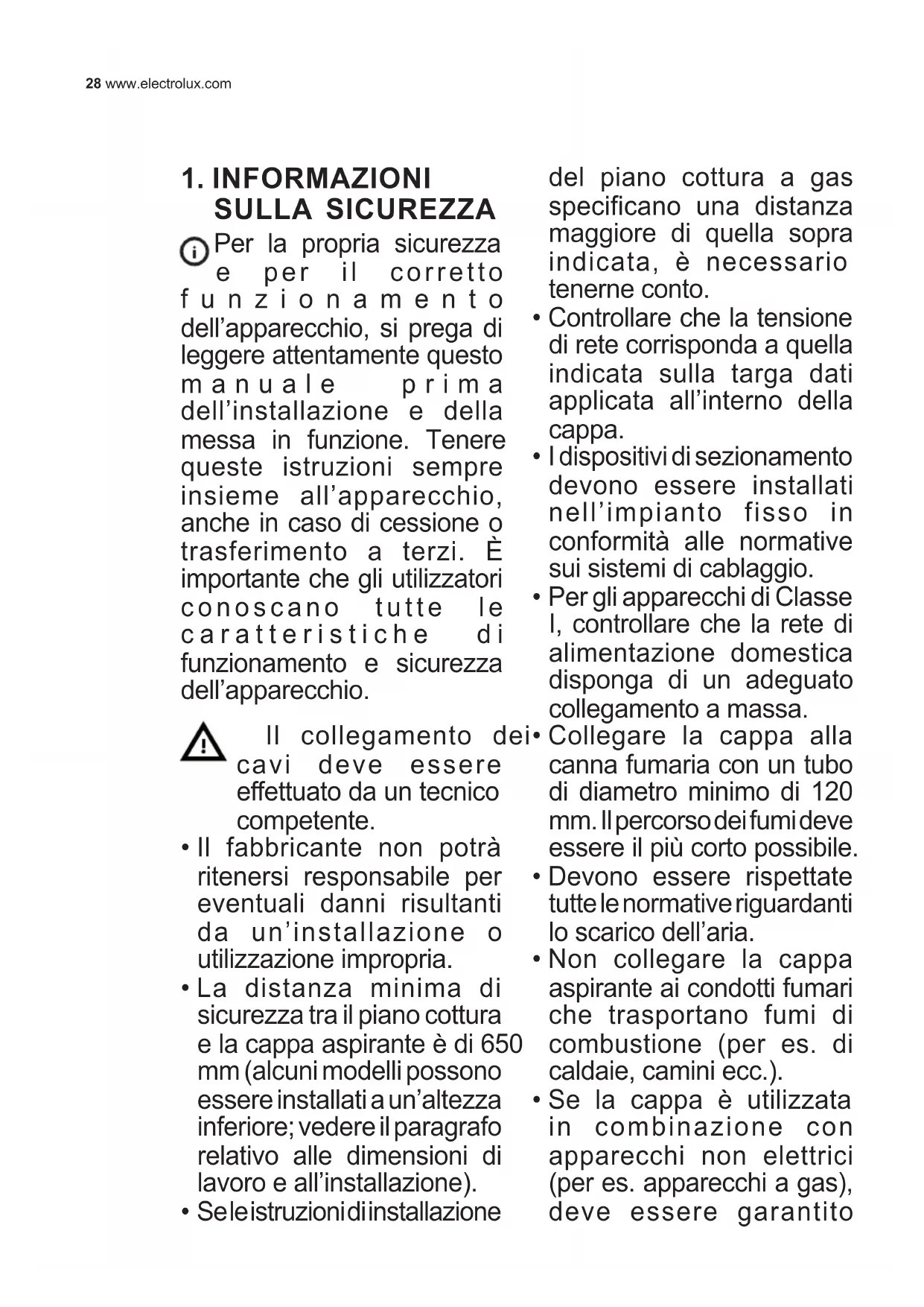 - Non collegare la cappa aspirante ai condotti fumari che trasportano fumi di combustione (per es. di caldaie, camini ecc.).