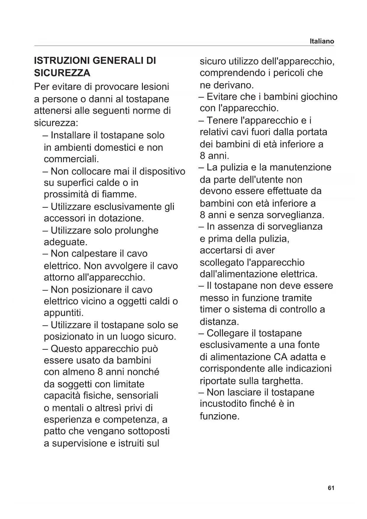 - Posizionare il tostapane su una supercie piana, non scivolosa e vicino a una presa.
