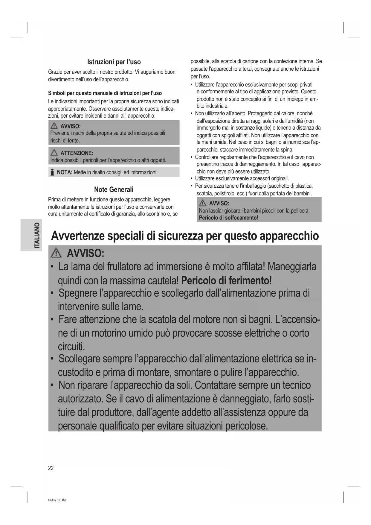 - La lama del frullatore ad immersione è molto aflata! Prestare mol- ta attenzione.25 SM3739_IM 14.03.19 ATTENZIONE: