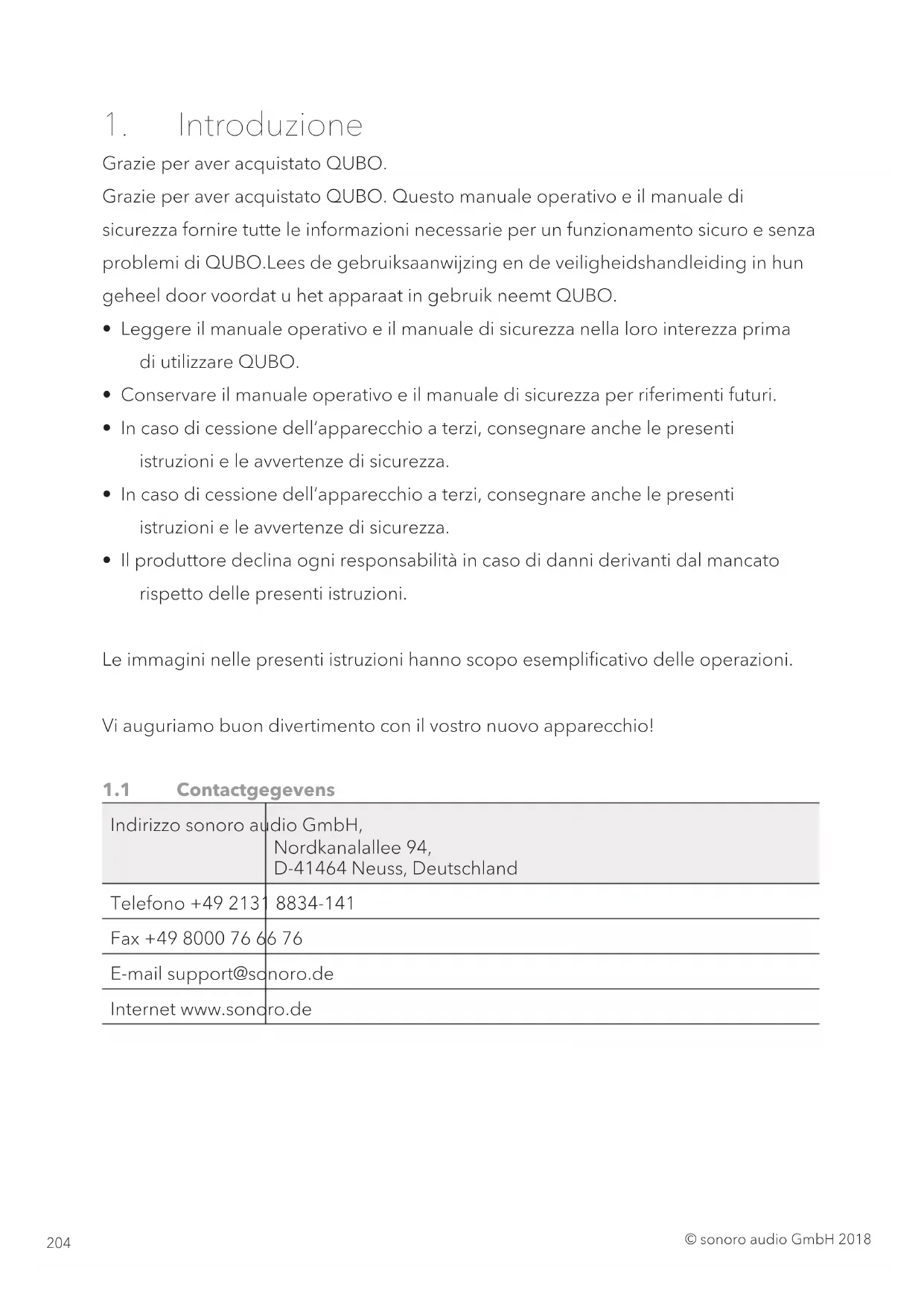 - In caso di reclami, rivolgersi al nostro Servizio Clienti. I dati di contatto sono disponibili in »Contatti« a pag. 252 www.sonoro.de.