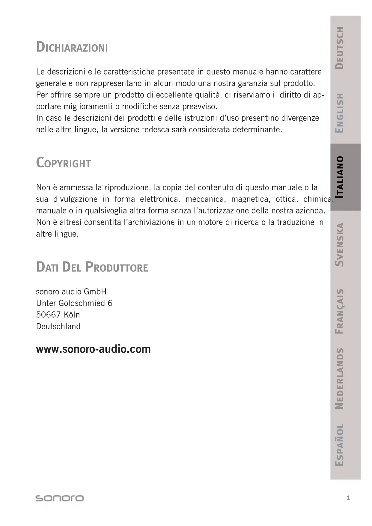 Scarica le istruzioni per il tuo Sistema hi-fi in formato PDF gratuitamente! Trova il tuo manuale Elements - SONORO e riprendi in mano il tuo dispositivo elettronico. In questa pagina sono pubblicati tutti i documenti necessari per l'utilizzo del tuo dispositivo. Elements del marchio SONORO.