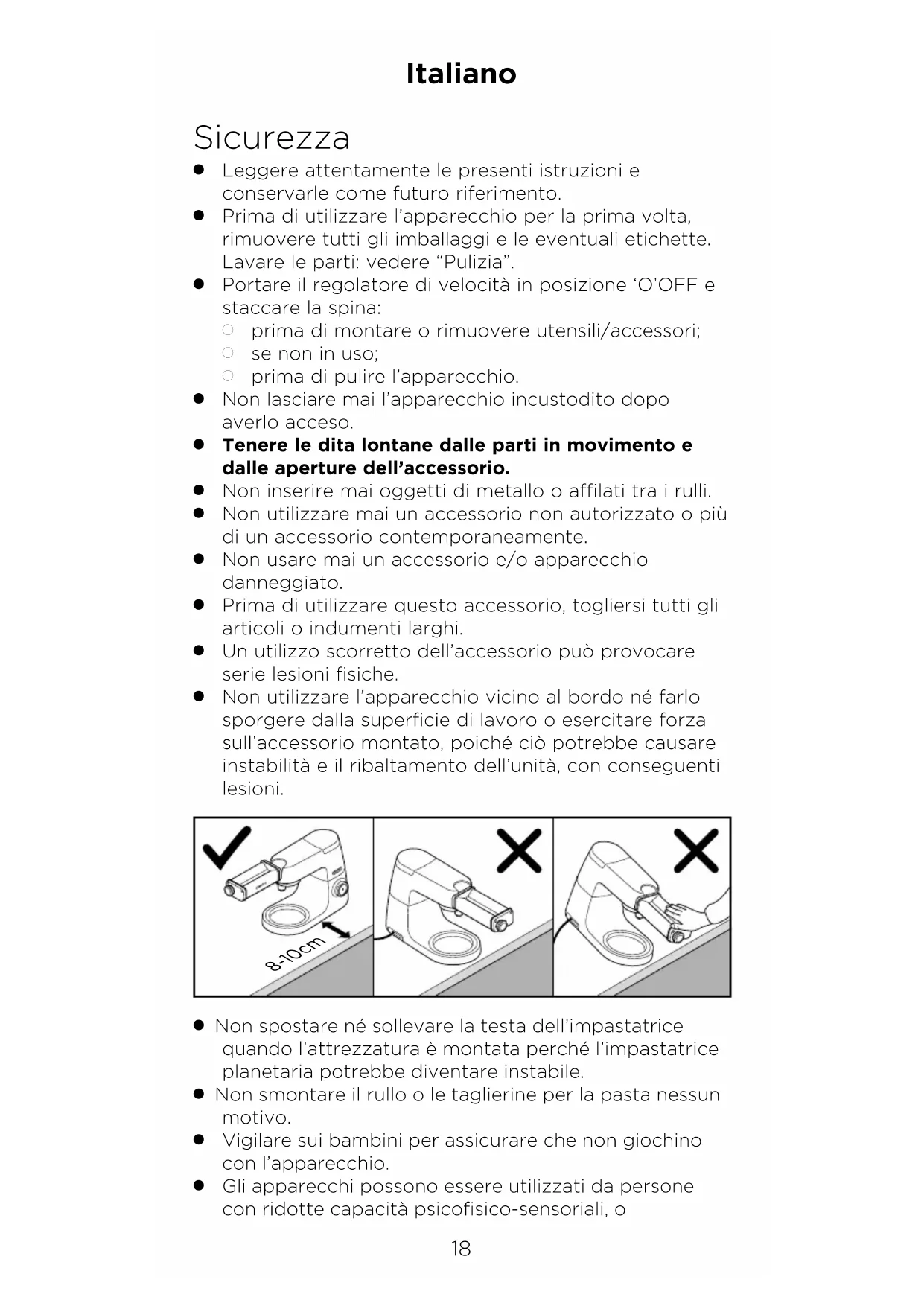 Non utilizzare l’apparecchio vicino al bordo né farlo sporgere dalla superficie di lavoro o esercitare forza sull’accessorio montato, poiché ciò potrebbe causare instabilità e il ribaltamento dell’unità, con conseguenti lesioni. 8-10cm