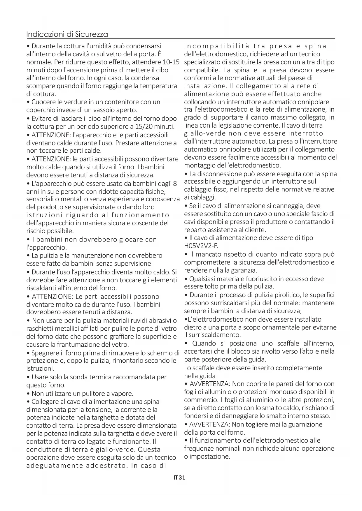 - La disconnessione può essere eseguita con la spina accessibile o aggiungendo un interruttore sul cablaggio fisso, nel rispetto delle normative relative ai cablaggi. IT 31Avvertenze Generali