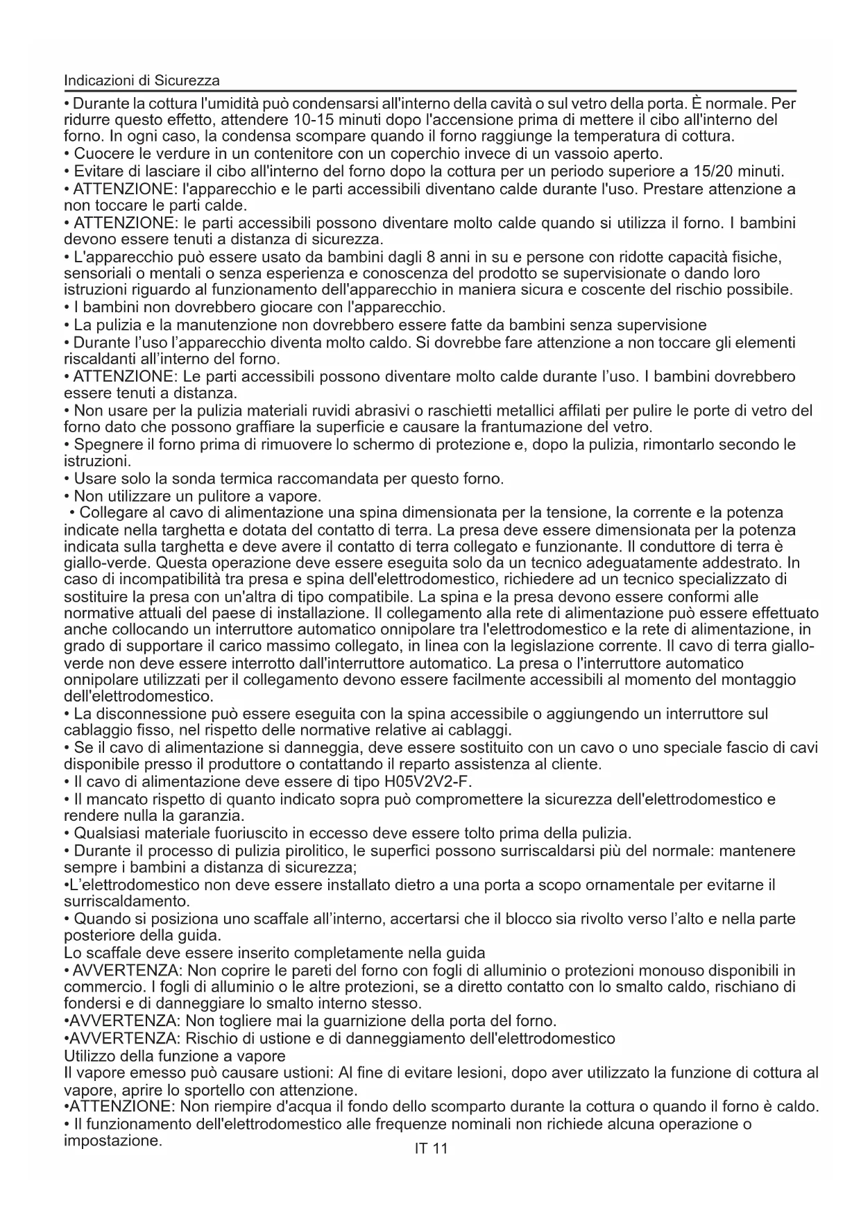 - Il funzionamento dell'elettrodomestico alle frequenze nominali non richiede alcuna operazione o impostazione. Indicazioni di Sicurezza IT 11Pulizia e Manutenzione del Forno Avvertenze Generali