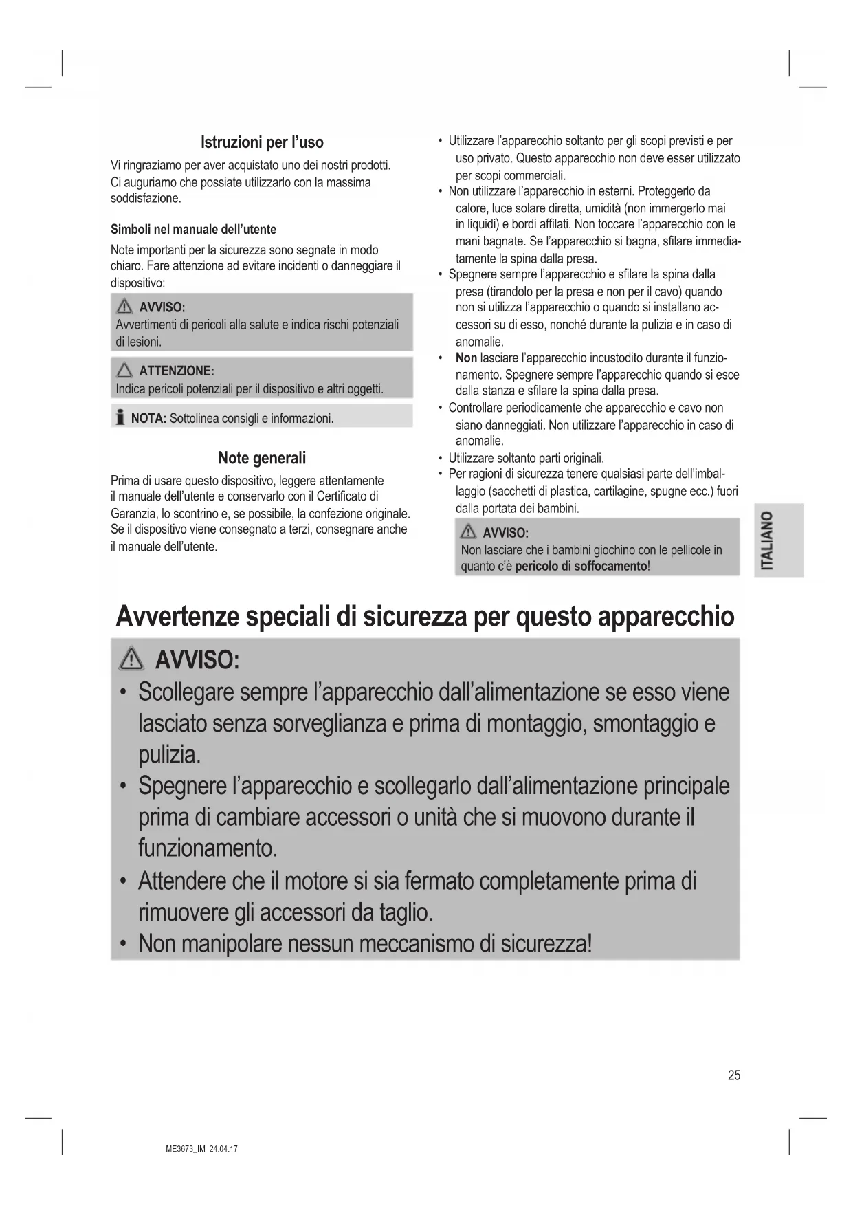 - Non manipolare nessun meccanismo di sicurezza!26 ME3673_IM 24.04.17 AVVISO: