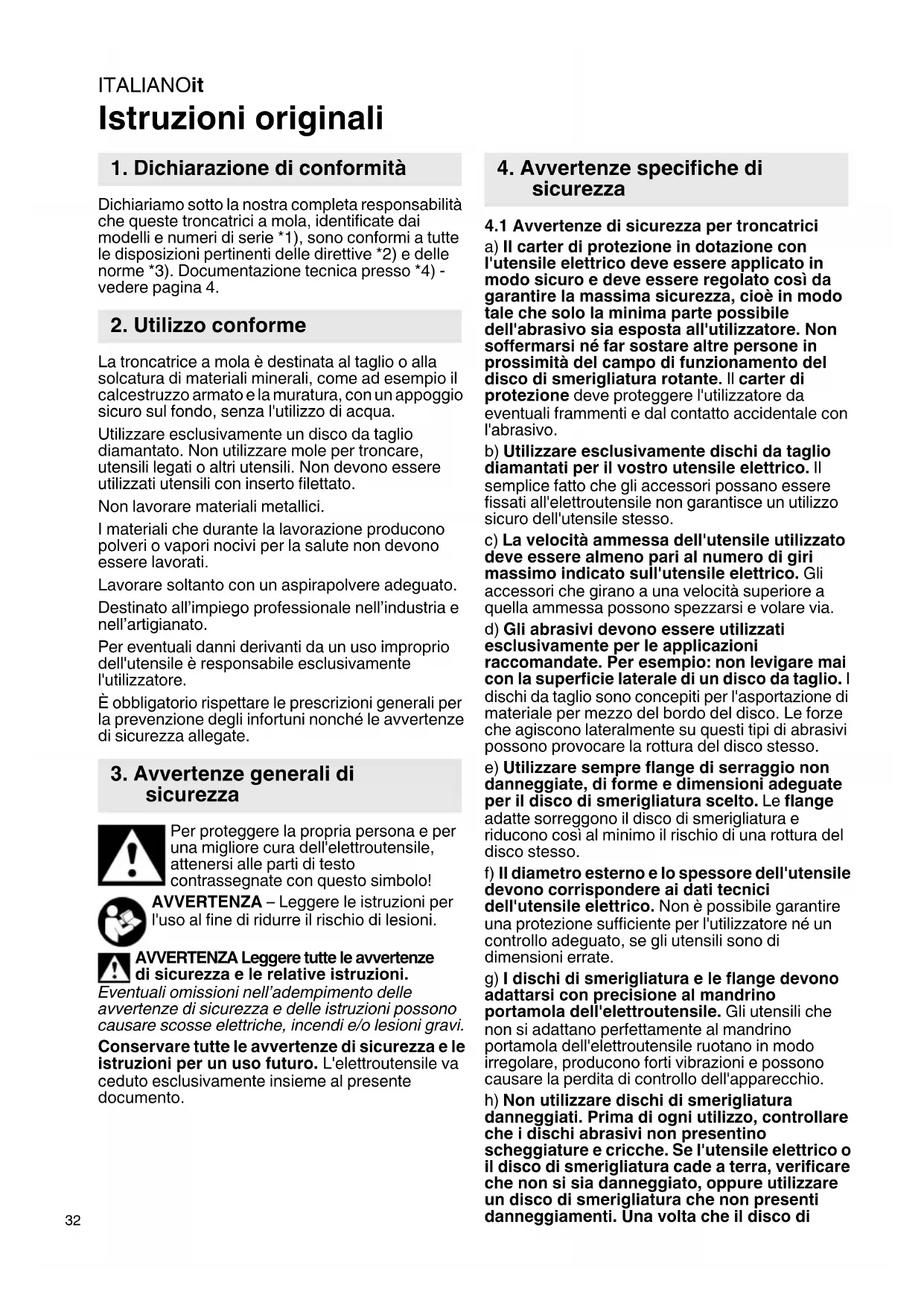 4.1 Avvertenze di sicurezza per troncatrici