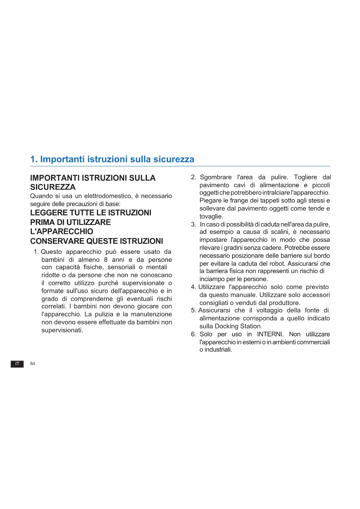 le indicazioni di questo Manuale d'uso. ECOVACS ROBOTICS non potrà essere ritenuta responsabile per eventuali danni o infortuni causati da un utilizzo inappropriato.