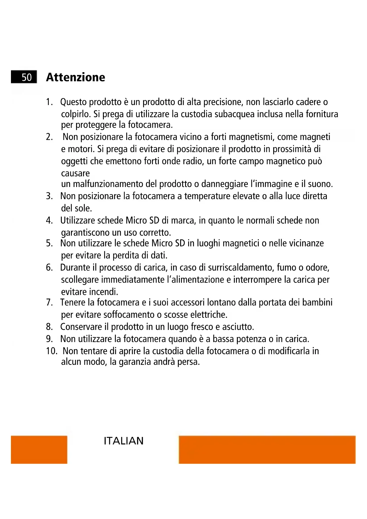 10. Non tentare di aprire la custodia della fotocamera o di modificarla in
