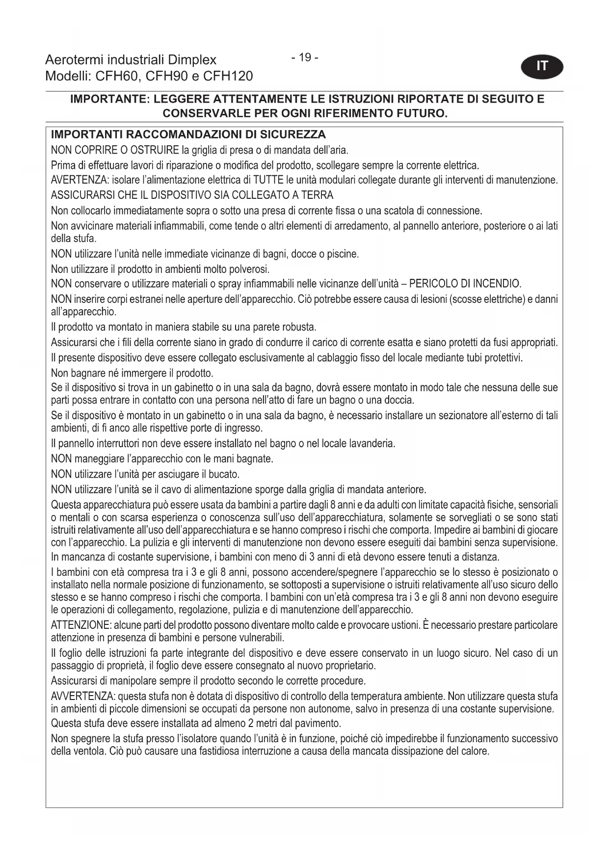 MANUALE UTENTE CFH120 DIMPLEX