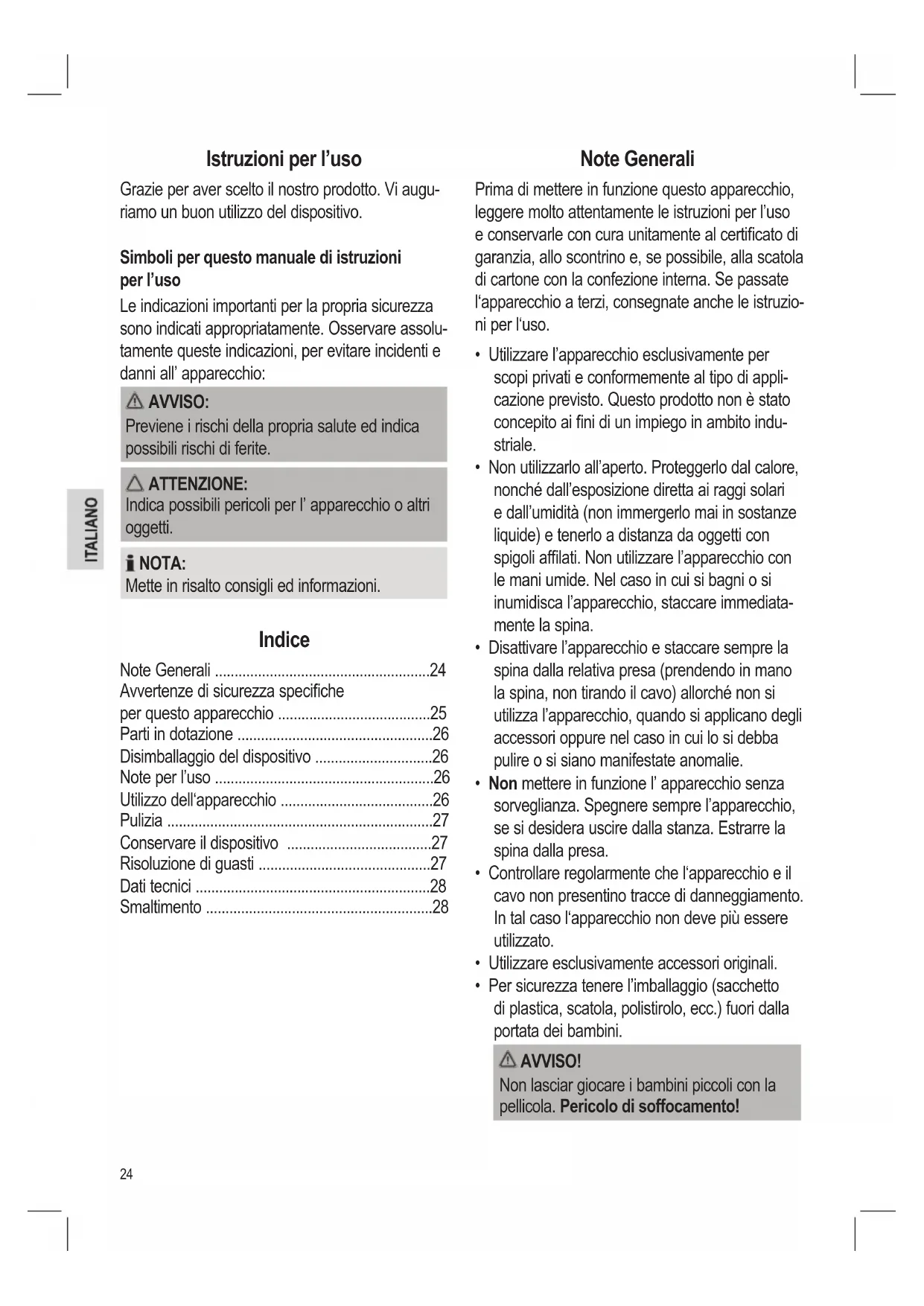 - Non mettere in funzione l’ apparecchio senza sorveglianza. Spegnere sempre l’apparecchio, se si desidera uscire dalla stanza. Estrarre la spina dalla presa.
