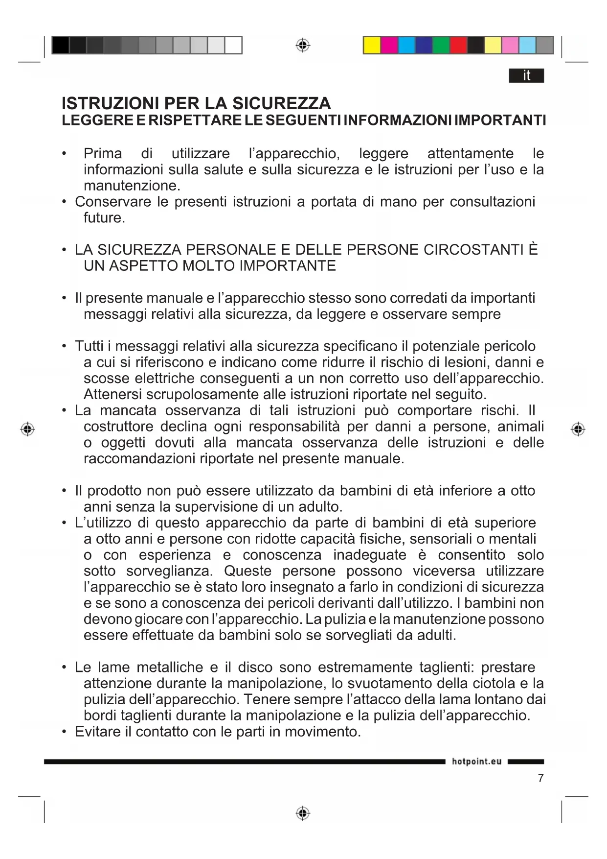 HB 080SP UP0 - Frullatore HOTPOINT - Manuale utente e istruzioni gratuiti