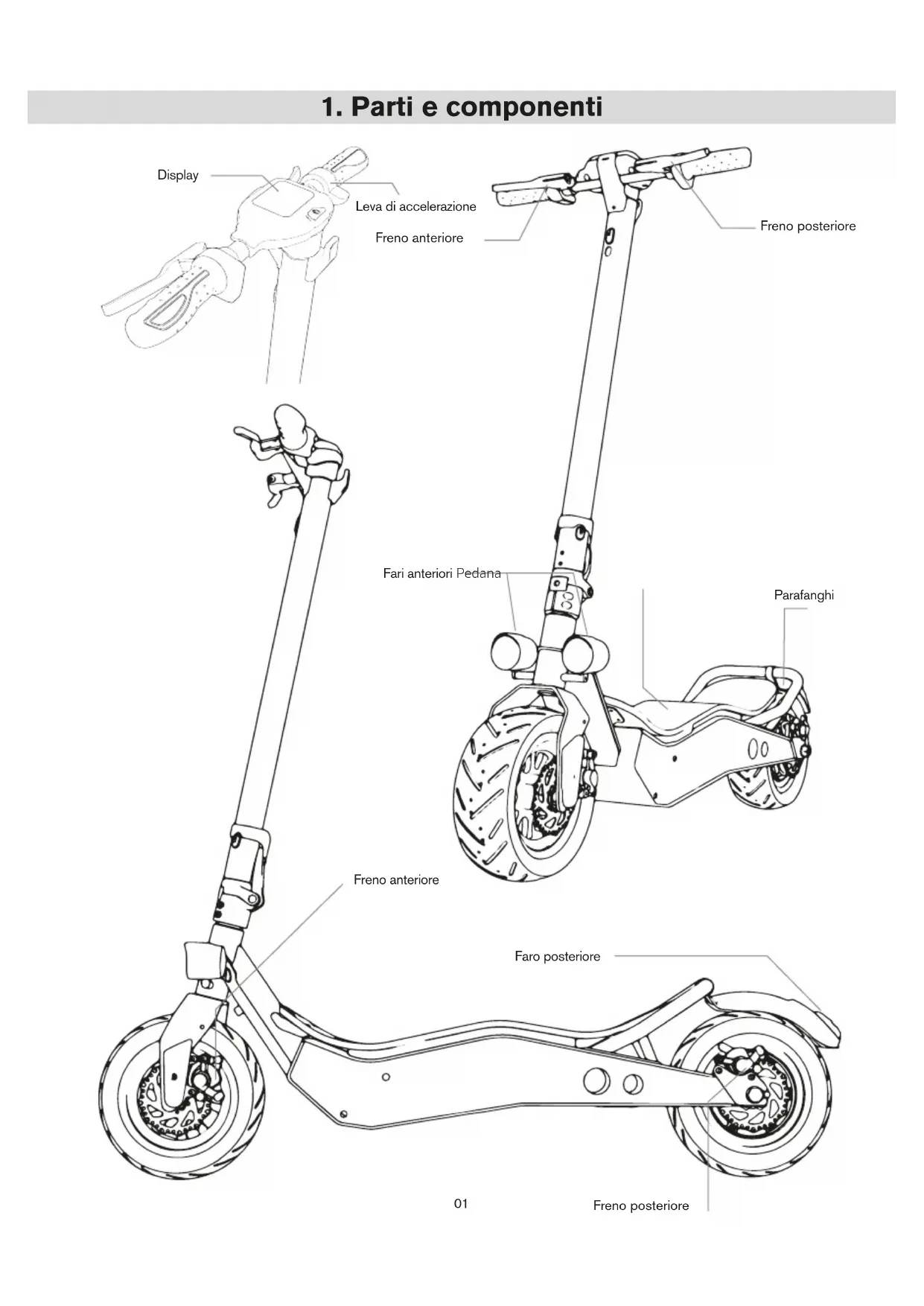 - Acceleratore: utilizzarlo per far partire il monopattino e per accelerare.