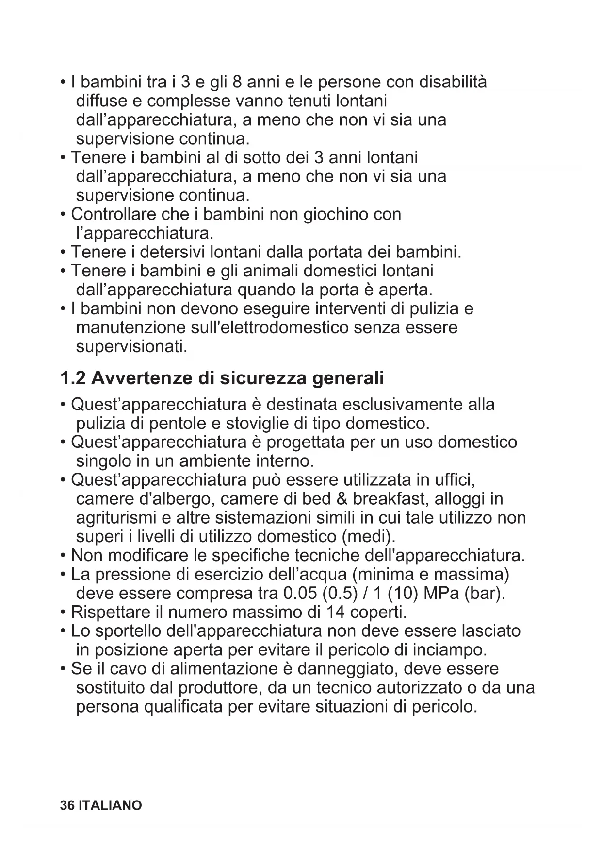 1.2 Avvertenze di sicurezza generali