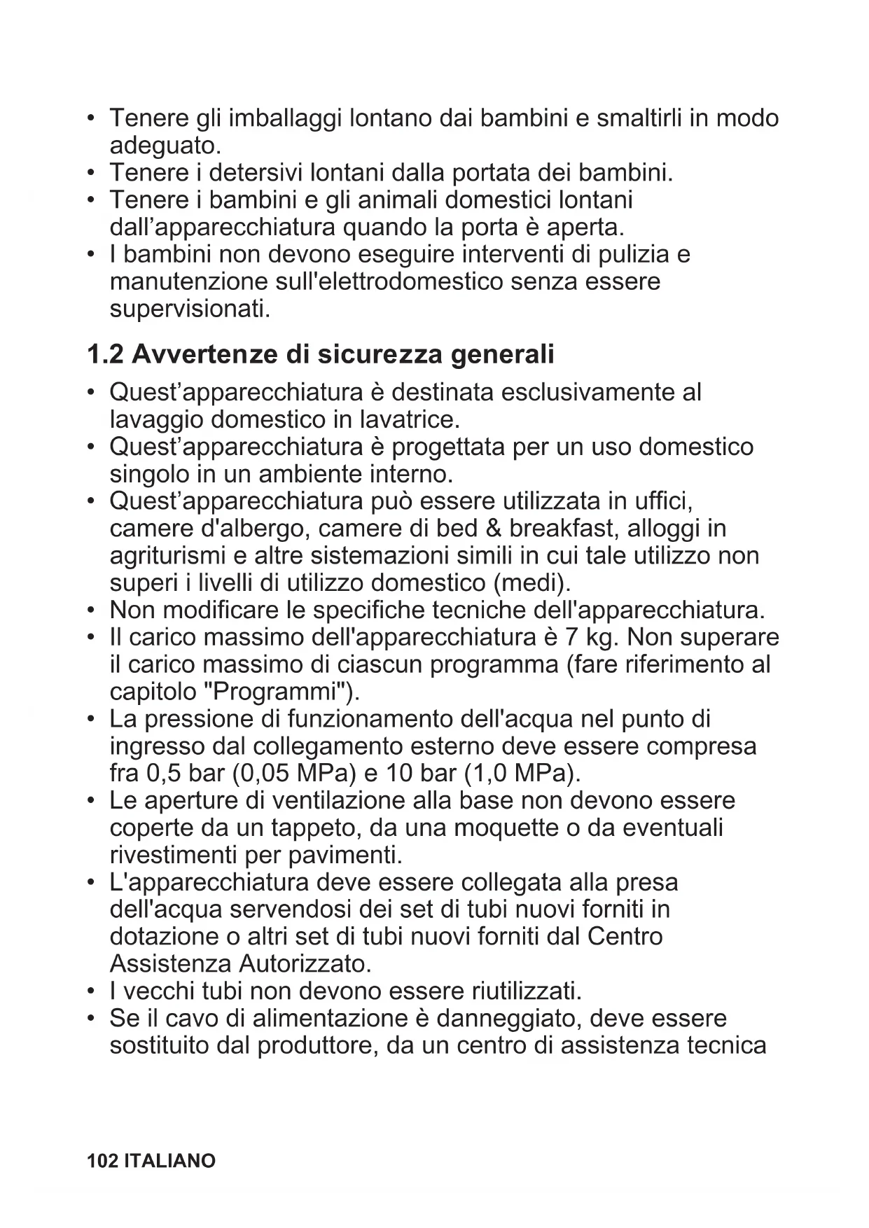 1.2 Avverenze di sicurezza generali