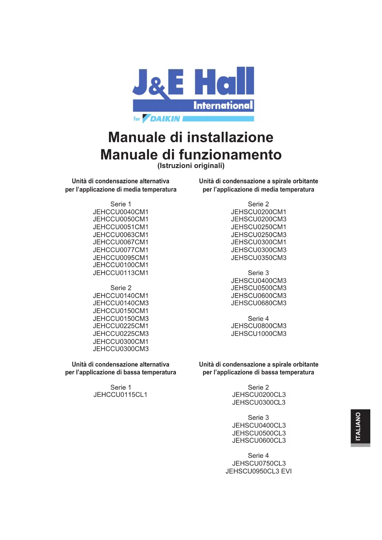 (JEHSCU0950CL3 EVI) Temp. media Temp. bassa ITALIANO3.14 Serie 4 unità EVI