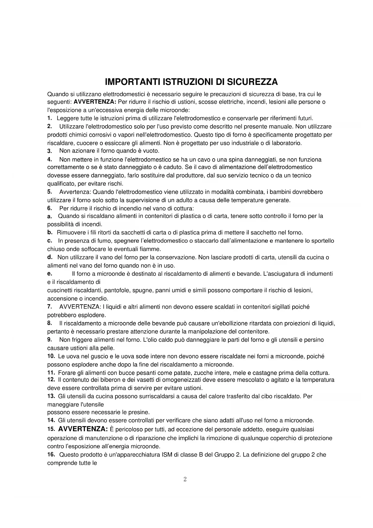 IMPORTANT ISTRUZIONI DI SICUREZZA 2