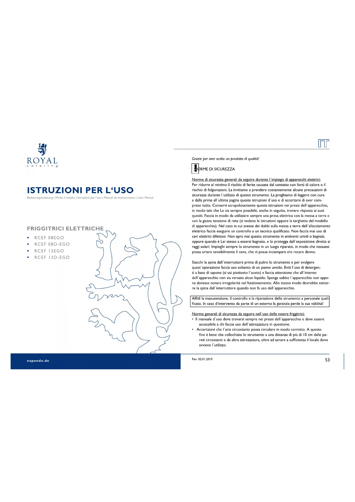 MANUALE UTENTE RCEF 13DEGO Royal Catering