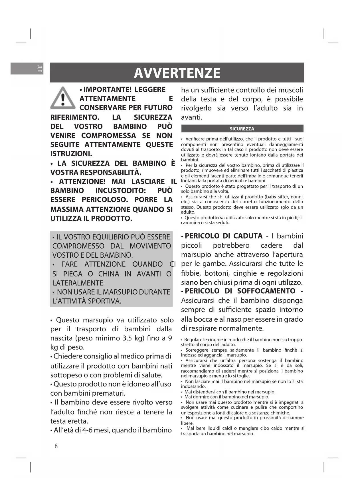 AVVERTENZE ha un suciente controllo dei muscoli della testa e del corpo, è possibile rivolgerlo sia verso l’adulto sia in avanti. SICUREZZA
