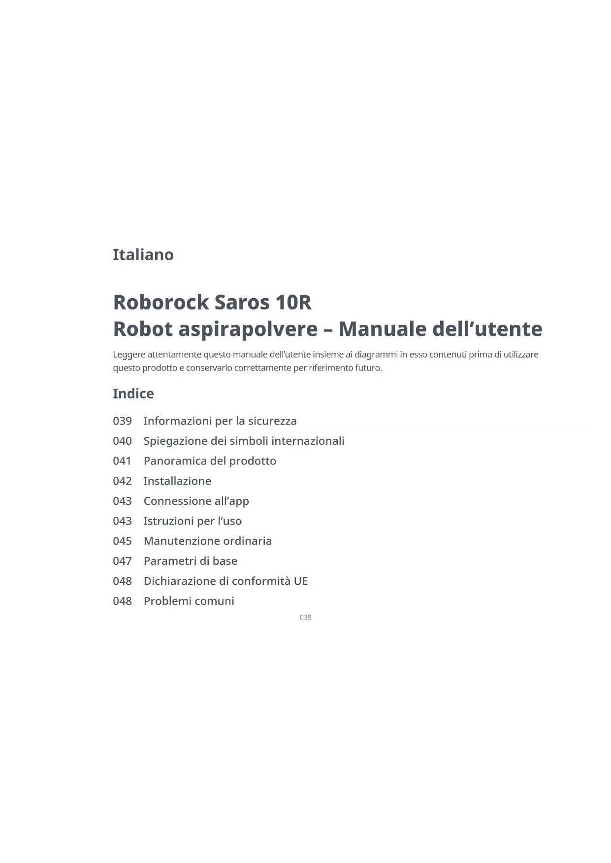 Trova gratuitamente il manuale del dispositivo Saros 10R ROBOROCK in formato PDF.